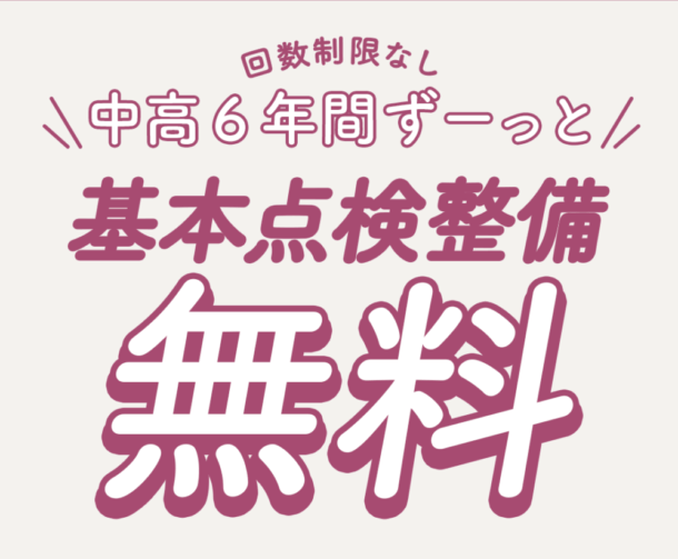 当店オリジナルの幸せます保証で、基本点検整備が中高6年間ずっと無料!回数無制限!