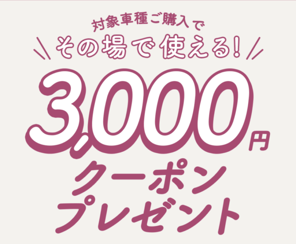 対象車種をご購入で、その場からすぐに使える3,000円分のオプションクーポンをプレゼント!