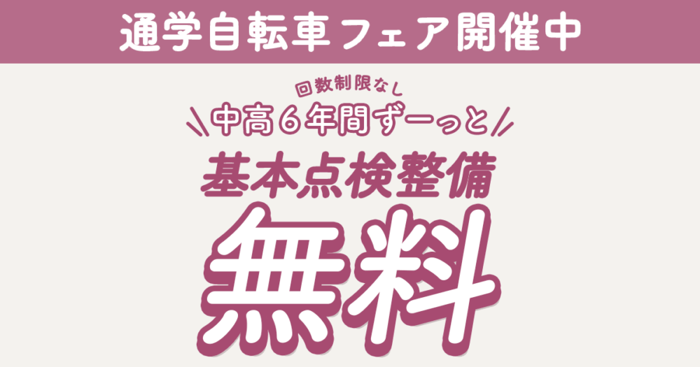 基本点検整備が6年間無料🌸通学自転車フェア|防府で安心・お得な通学自転車はシゲムラで!
