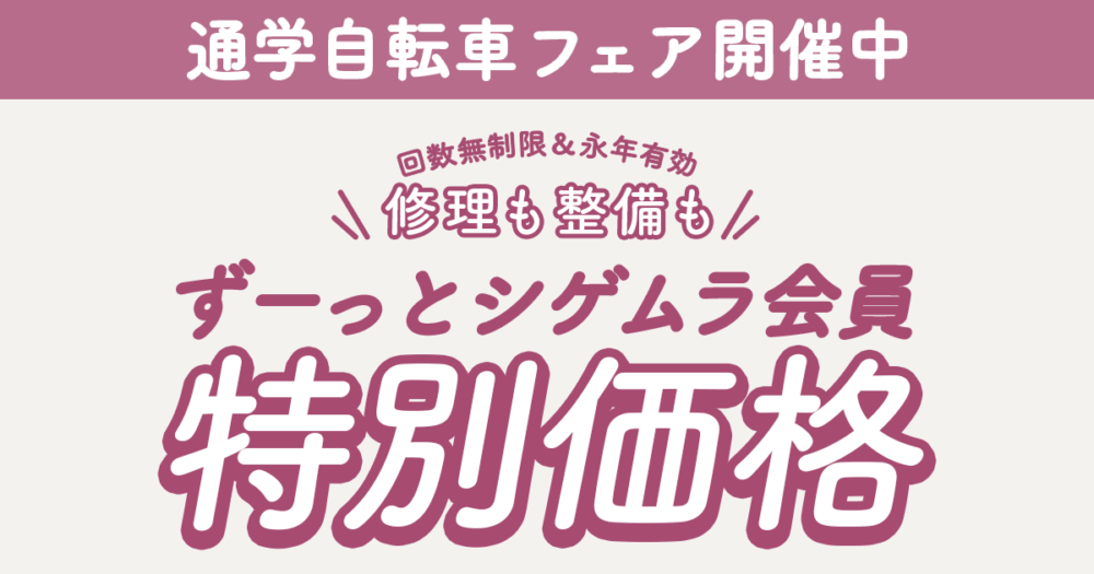 修理がずーっと会員特別価格🌸通学自転車フェア|防府の安心でお得な通学自転車はシゲムラで!